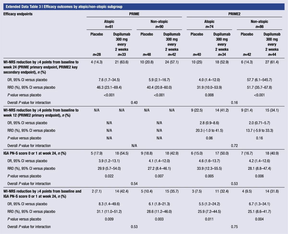 Extended Data Table 3 | Efficacy outcomes by atopic or non-atopic subgroup