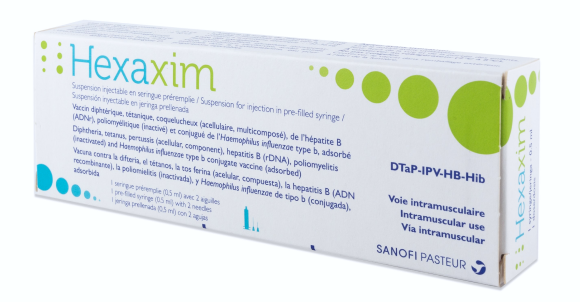 No use HEXAXIM® si su hijo ha tenido una reacción alérgica (hipersensibilidad) a una vacuna antidiftérica, antitetánica, contra la tos ferina (cualquier vacuna que proteja contra la tos ferina), contra la hepatitis B, antipoliomielítica o contra Hib y/o a cualquiera de los otros ingredientes indicados en la sección composición. Ha padecido encefalopatía (lesiones cerebrales) en los 7 días siguientes a una dosis de una vacuna contra la tos ferina (acelular o de célula entera).