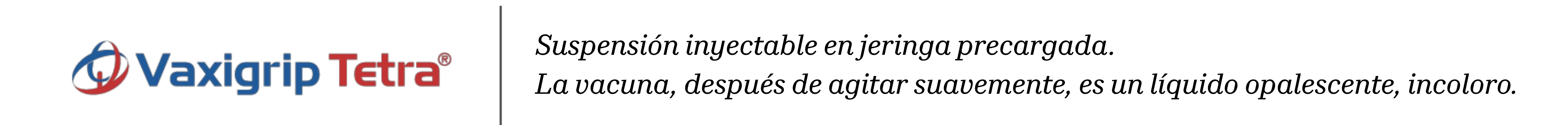 - Bebés de menos de 6 meses de edad: no se ha establecido la seguridad ni la eficacia de la administración de VAXIGRIPTETRA (inmunización activa).