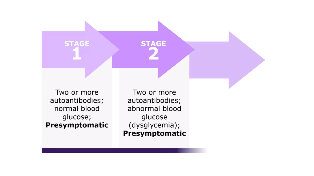 Anti-islet autoantibodies, responsible for destruction of insulin-producing beta-cells, can be detected during the presymptomatic phase (Stage 1 and 2) of autoimmune T1D. If left undetected, there is progression from the presymptomatic phase to symptomatic phase (Stage 3), which is characterized by beta-cell functional loss and hyperglycemia, which may often lead to ketoacidosis.6