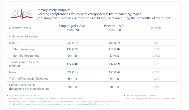 Adapted from Table 3. Bleeding Complications. The CURE Study. N Engl J Med. 2001 Aug 16;345(7):494-502