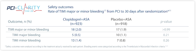 Adapted from Table 4. Safety Outcomes, The PCI-CLARITY Study. JAMA. 2005;294(10):1224–1232