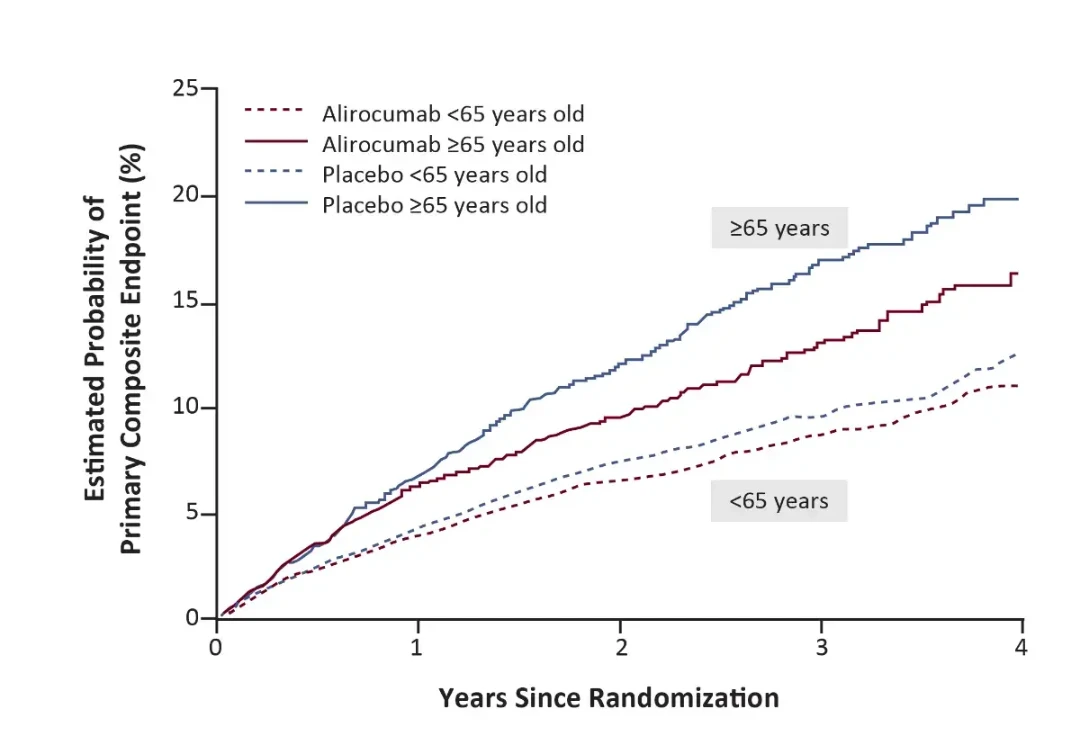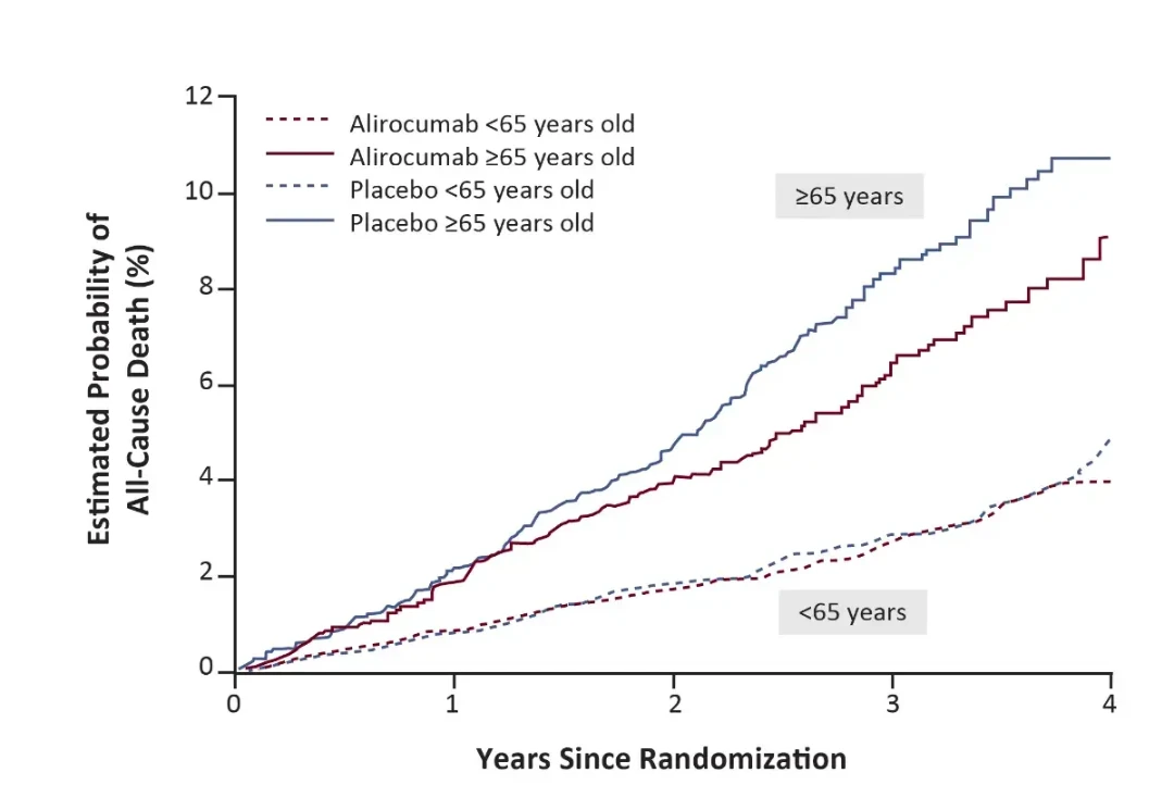 - Alirocumab demonstrated an effective RRR for primary MACE outcome, and was associated with an effective reduction of all-cause death across age categories