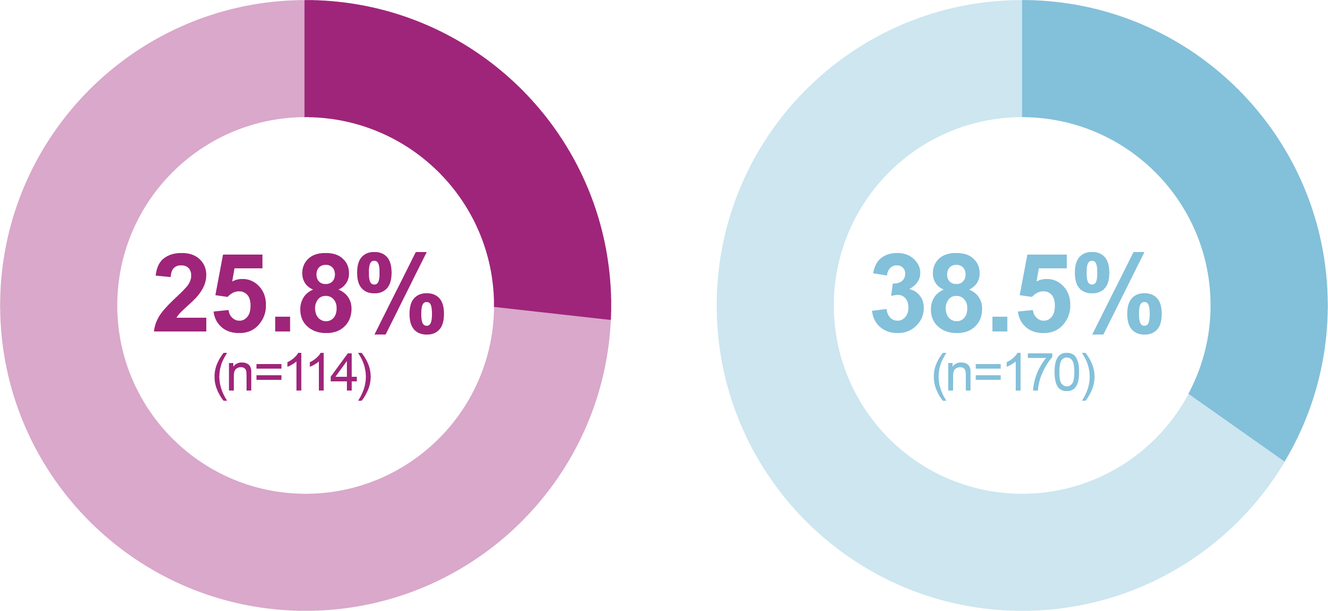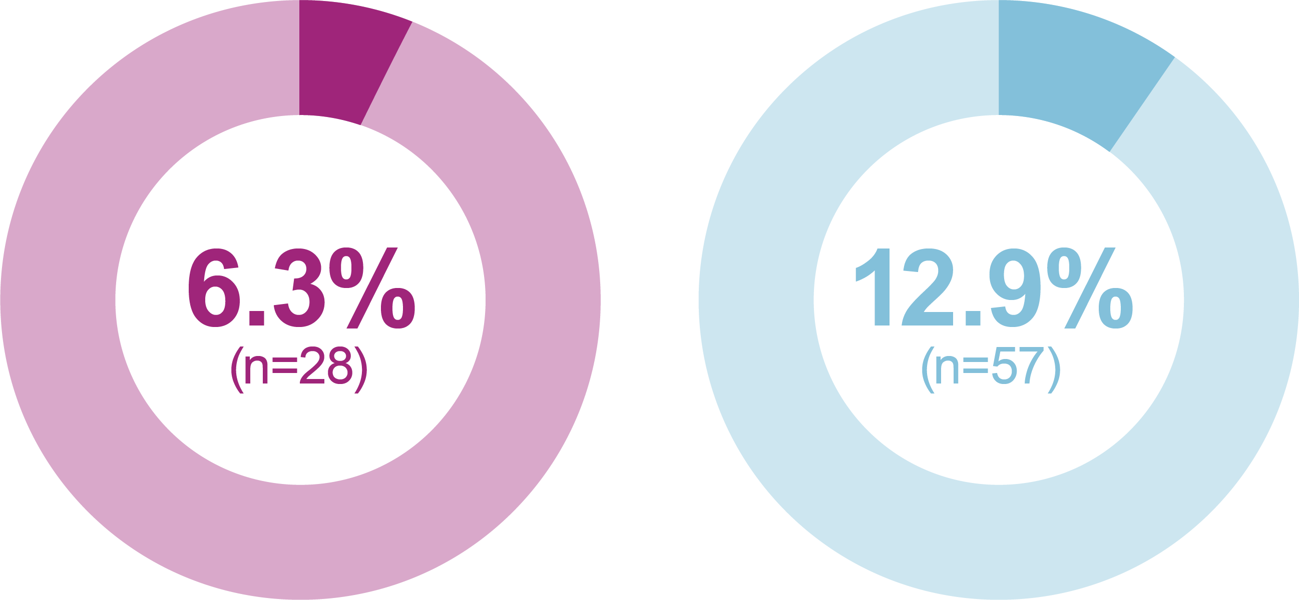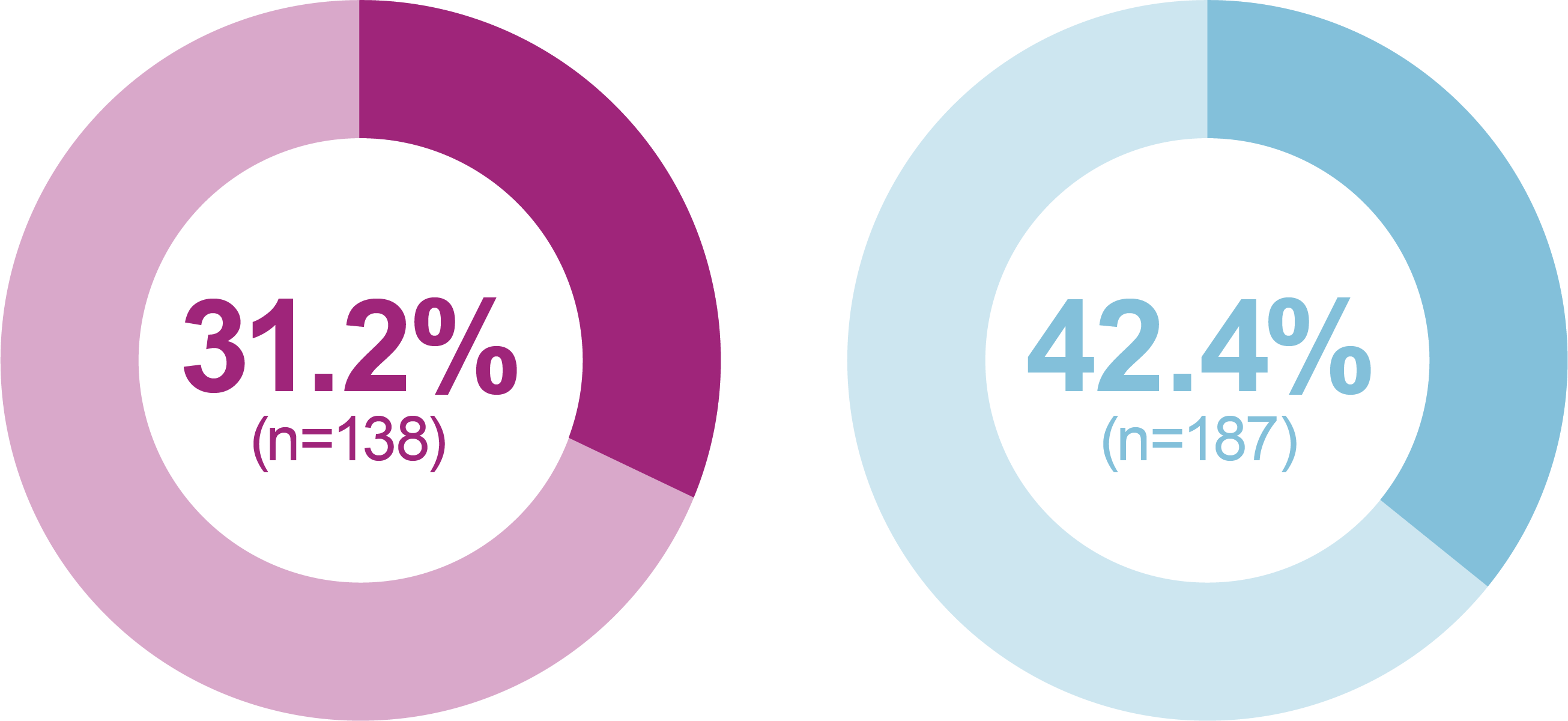 | Any treatment-emergent AE | 144 (32.6) | 122 (27.7) |
