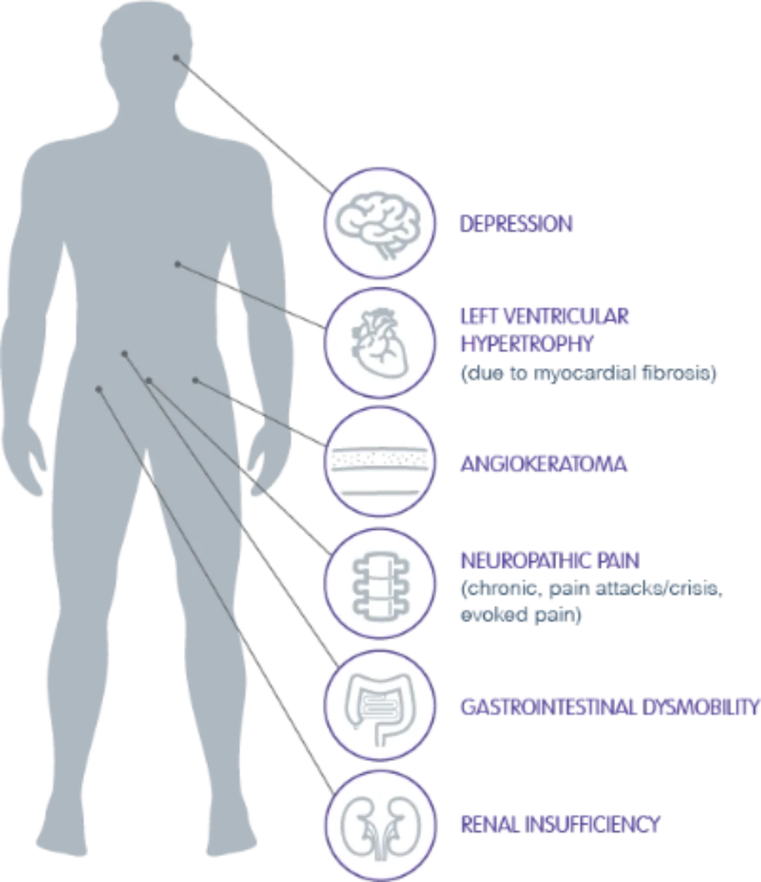 As an X-linked lysosomal storage disorder that is multisystemic, Fabry disease is caused by complete or partial deficiency of the lysosomal enzyme α-GAL A, leading to GL-3 and lyso-GL-3 accumulation that can result in damage to the heart, kidneys, and cerebrovascular system.2,3