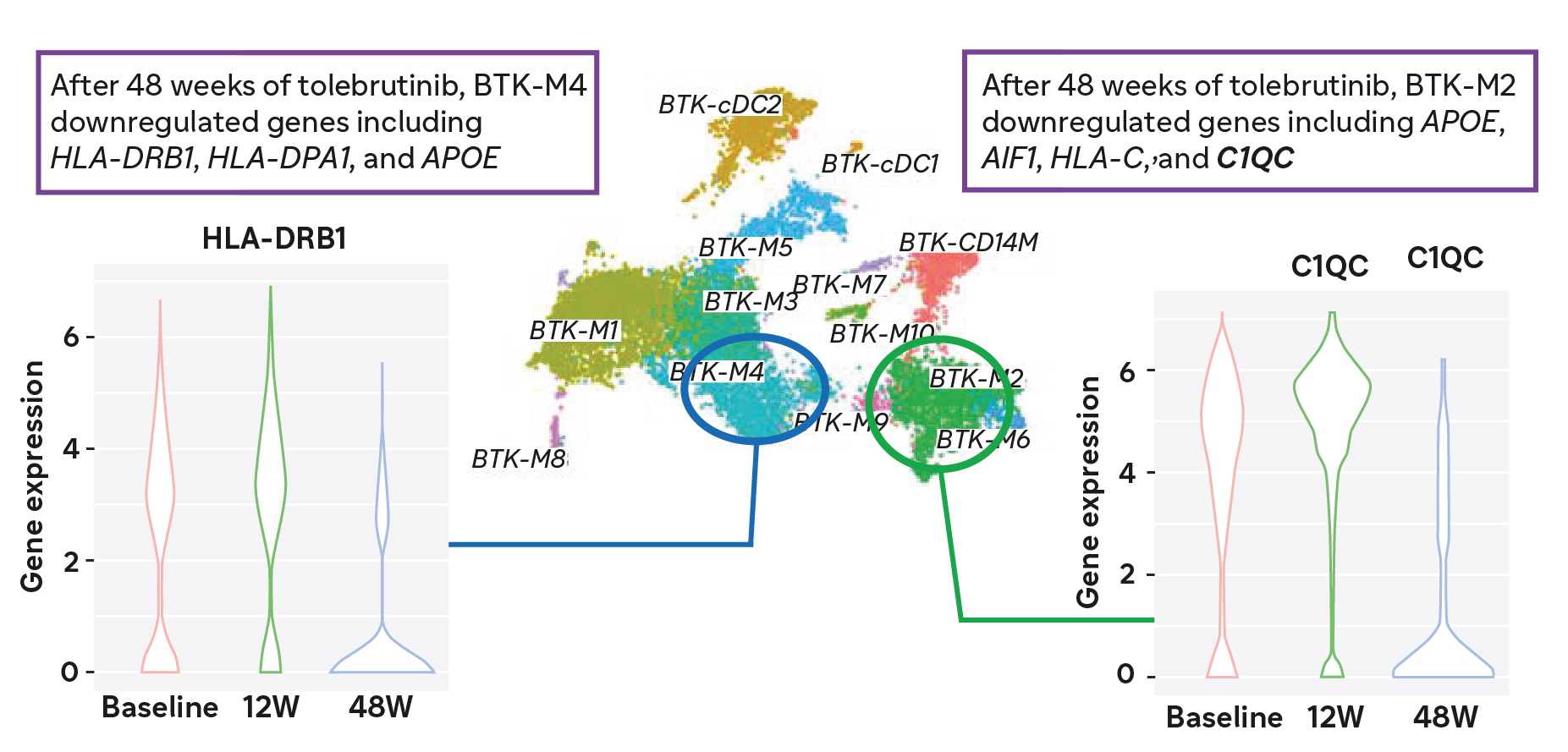 At 48 weeks after crossing over to tolebrutinib, gene expression is altered in myeloid cells4