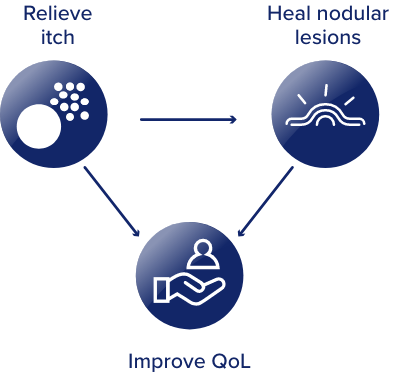 The clinical objective in PN is to relieve intense itch and heal nodular lesions, which may improve patients’ QoL2-4