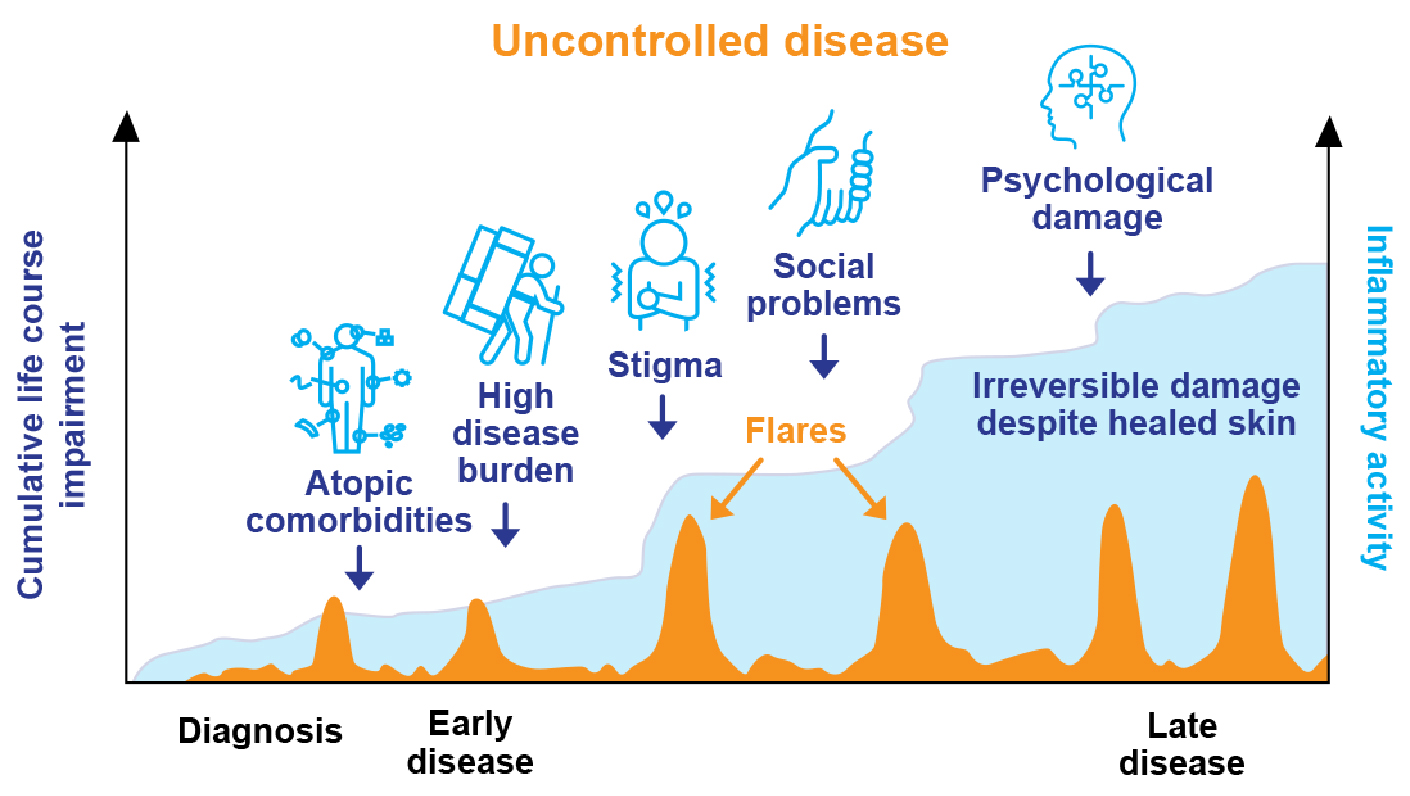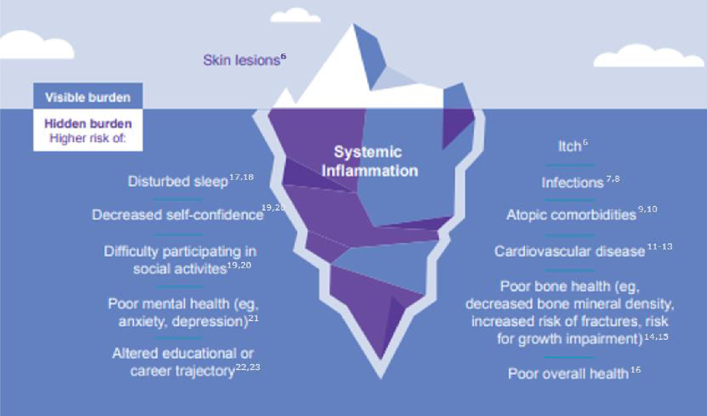 The burden of uncontrolled AD may further lead to other factors such as sleep loss, impaired functioning, self-esteem issues, reduced productivity, cardiovascular diseases, poor bone health, financial strain, and loss of opportunities.23-27