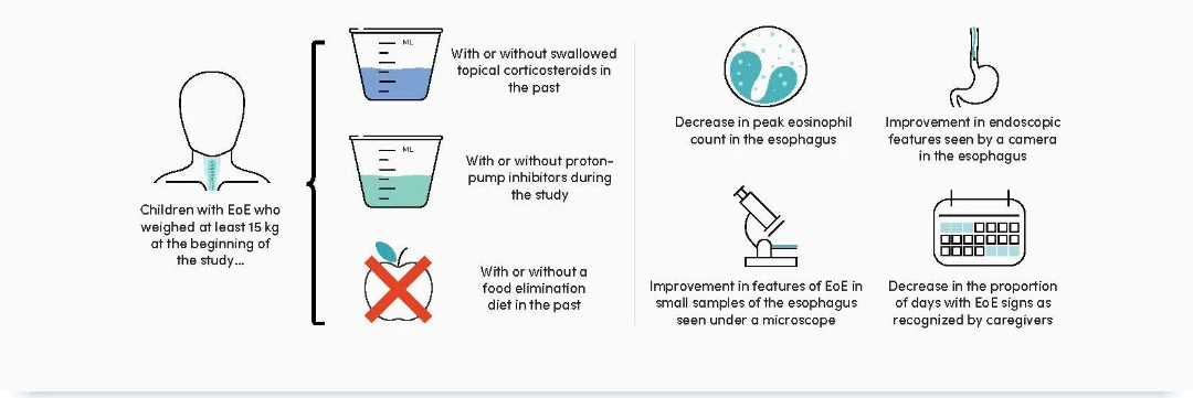 - The EoE KIDS trial assessed whether dupilumab reduced signs of EoE in 102 affected children