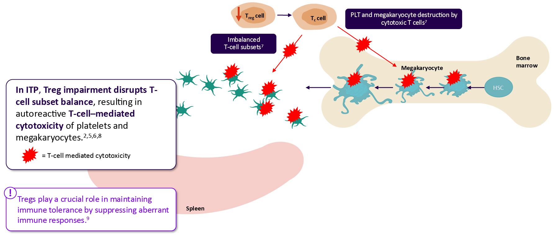 The pathophysiology of ITP stems from complex immune dysregulation drives thrombocytopenia and inflammation.1,2,5-12