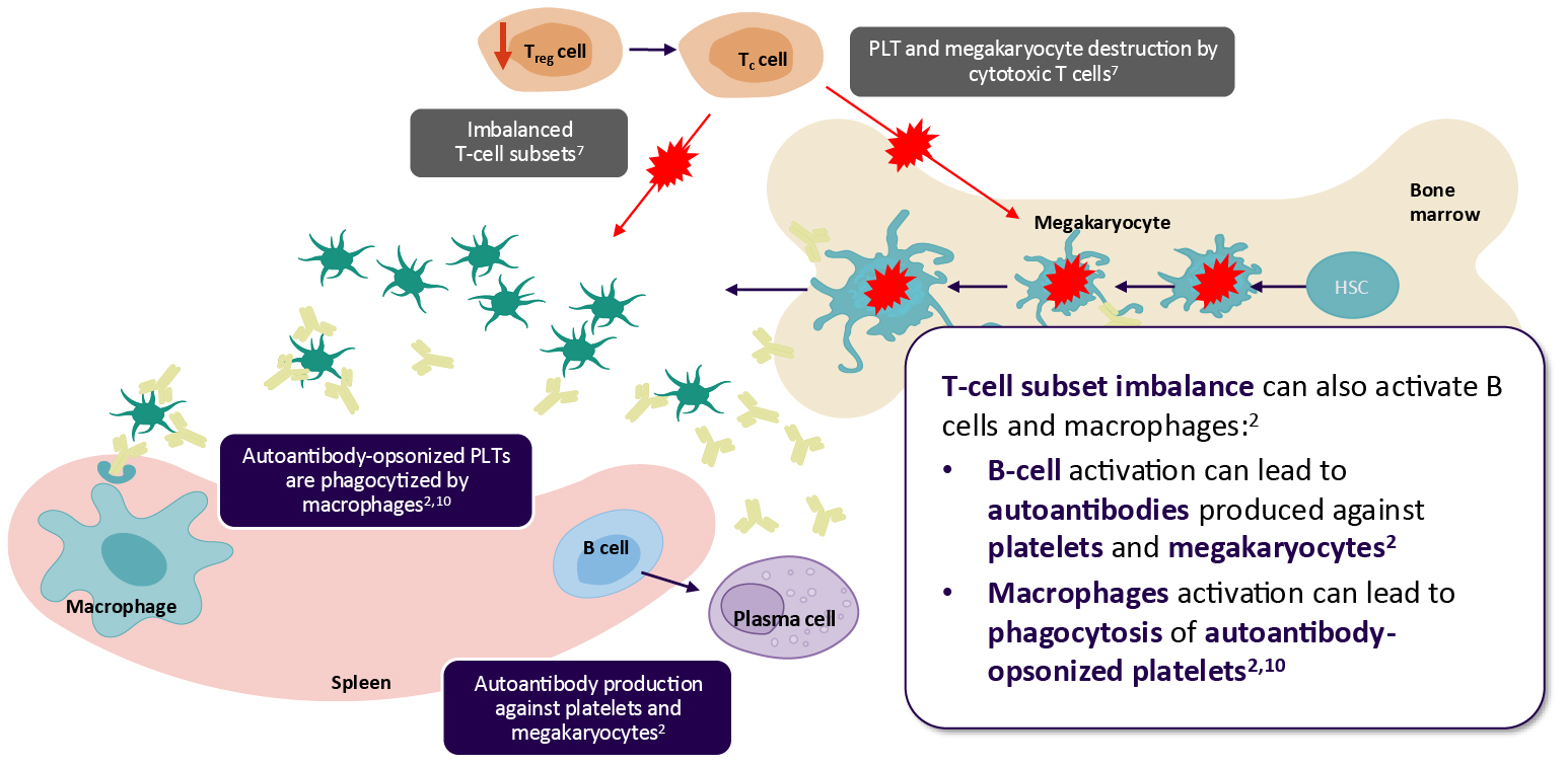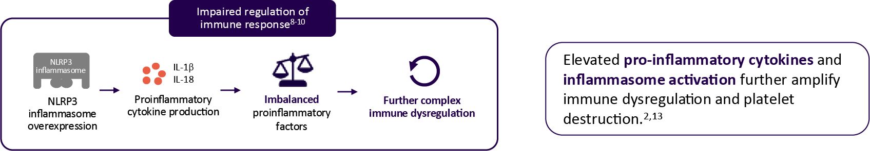 • Leading to a chronic pro-inflammatory state that further drives T-cell and B-cell dysfunction, contributes to platelet destruction, and amplifies the overall immune response in ITP.10