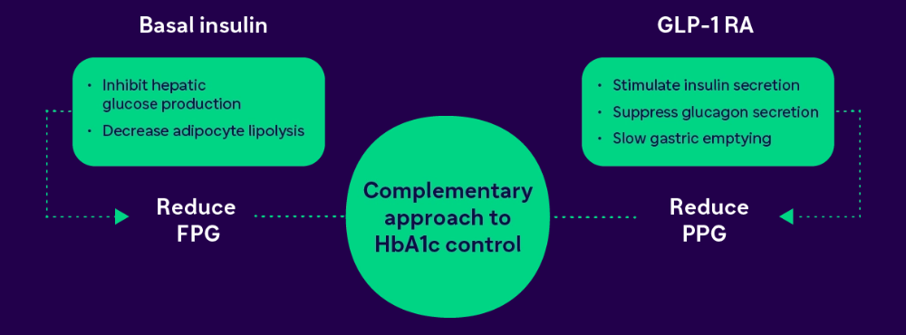 The combination of a BI analog and a GLP-1 RA may be a simple and effective way to target the multi-faceted manifestations of T2D and may help reduce the burden and complexity of treatment¹