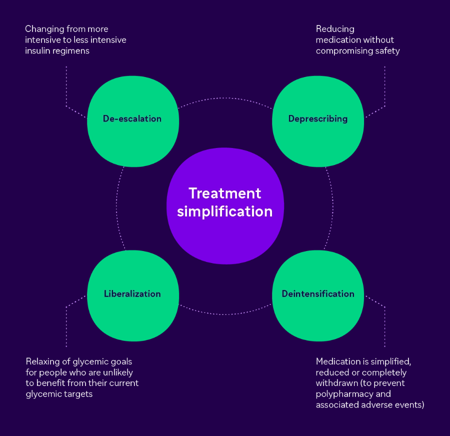 - Expert panel guidance recommends that treatment simplification should be defined as an attempt to decrease treatment complexity and burden of treatment, particularly insulin therapy*4