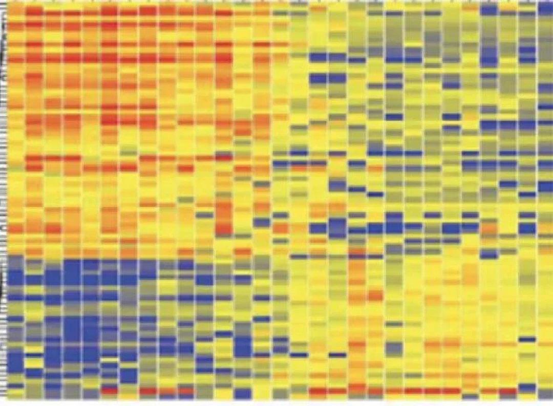 The EoE diagnostic panel, or EDP (shown below), is a molecular diagnostic test that differentiates patients with eosinophilic esophagitis from normal controls based on 94 EoE genes; a heatmap shows which gene transcripts are upregulated (red) relative to normal controls (blue).5