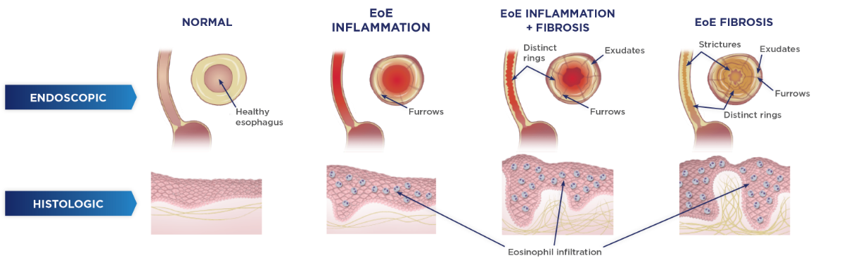 Eosinophilic esophagitis is a chronic, progressive, inflammatory disease, characterized by endoscopic and histologic changes to the esophagus1,4