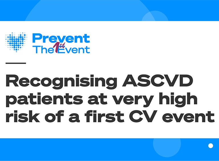 ASCVD has many different clinical manifestations, including acute events such as ACS, stroke and TIA, and chronic conditions such as PAD, CAD and cerebrovascular disease.2 Comorbidities such as T2DM alongside either PAD or CAD can further exacerbate a patient’s CV risk, but, according to ESC guidelines, all patients with ASCVD are at very high risk of a potentially fatal CV event.2