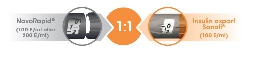 Insulin aspart Sanofi (100 E/ml) är en biosimilar till NovoRapid som inte kräver doskonvertering och finns tillgänglig i den förfyllda injektionspennan SoloStar och cylinderampull.